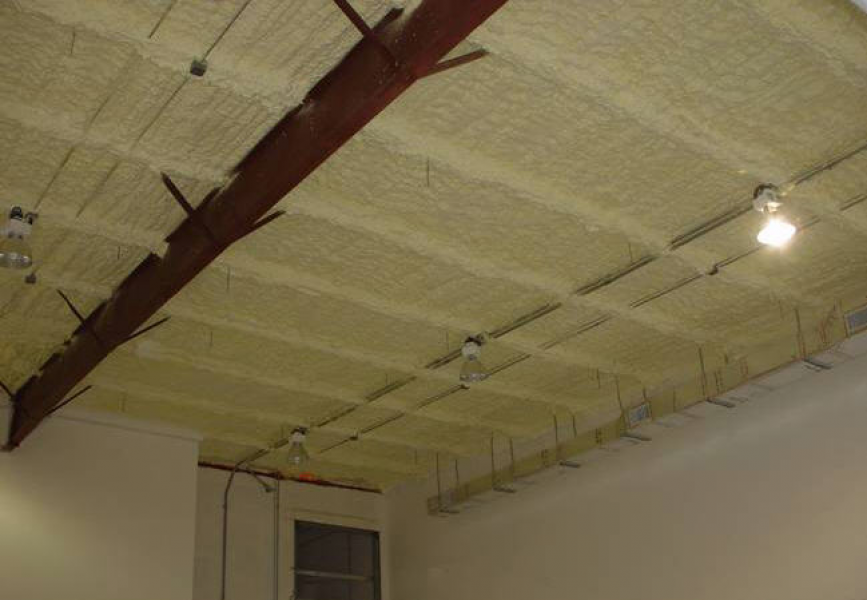 Особливо часто таке утеплення, застосовують в офісних, житлових, промислових, складських, сільськогосподарських будівлях чи приміщеннях, -пінополіуретаном утепляють бетонні стелі чи перекриття, як зсередини так і ззовні, - зверху вниз, зі сторони горища, - у випадку відсутності доступу до поверхні знизу. Завдяки універсальності технології утеплення методом напилення, пінополуретан рівномірно утепляє, всю нерівну поверхню разом зі щілинами, примиканнями, несучими балками чи пілонами, розділяючи отоплювані приміщення надійним твердим, довговічним теплоізоляційним шаром.